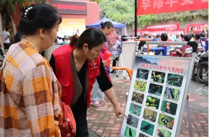 各街道、各社区工作人员和志愿者走进小区院落、餐饮商户,通过现场宣讲、散发传单、设置展板等形式,引导居民认识鸟类、关注鸟类、保护鸟类,自觉抵制捕猎、售卖野生动物等违法犯罪行为。邀请律师、法官、执法人员等法律专业人士举办多场次专题培训,为基层工作人员依法开展保护野生动物工作提供了坚实的理论支撑和实操指导,激发群众对自然生态的热爱与责任感。
