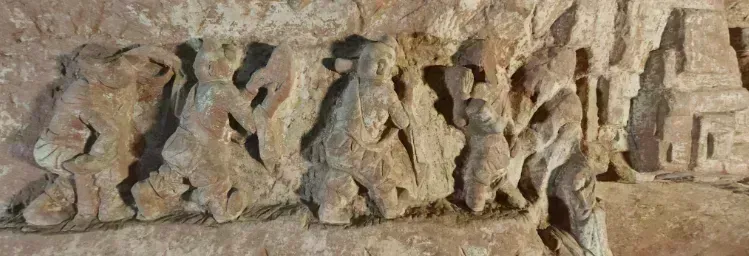安塞一石窟发现刻有北宋秧歌腰鼓表演石雕