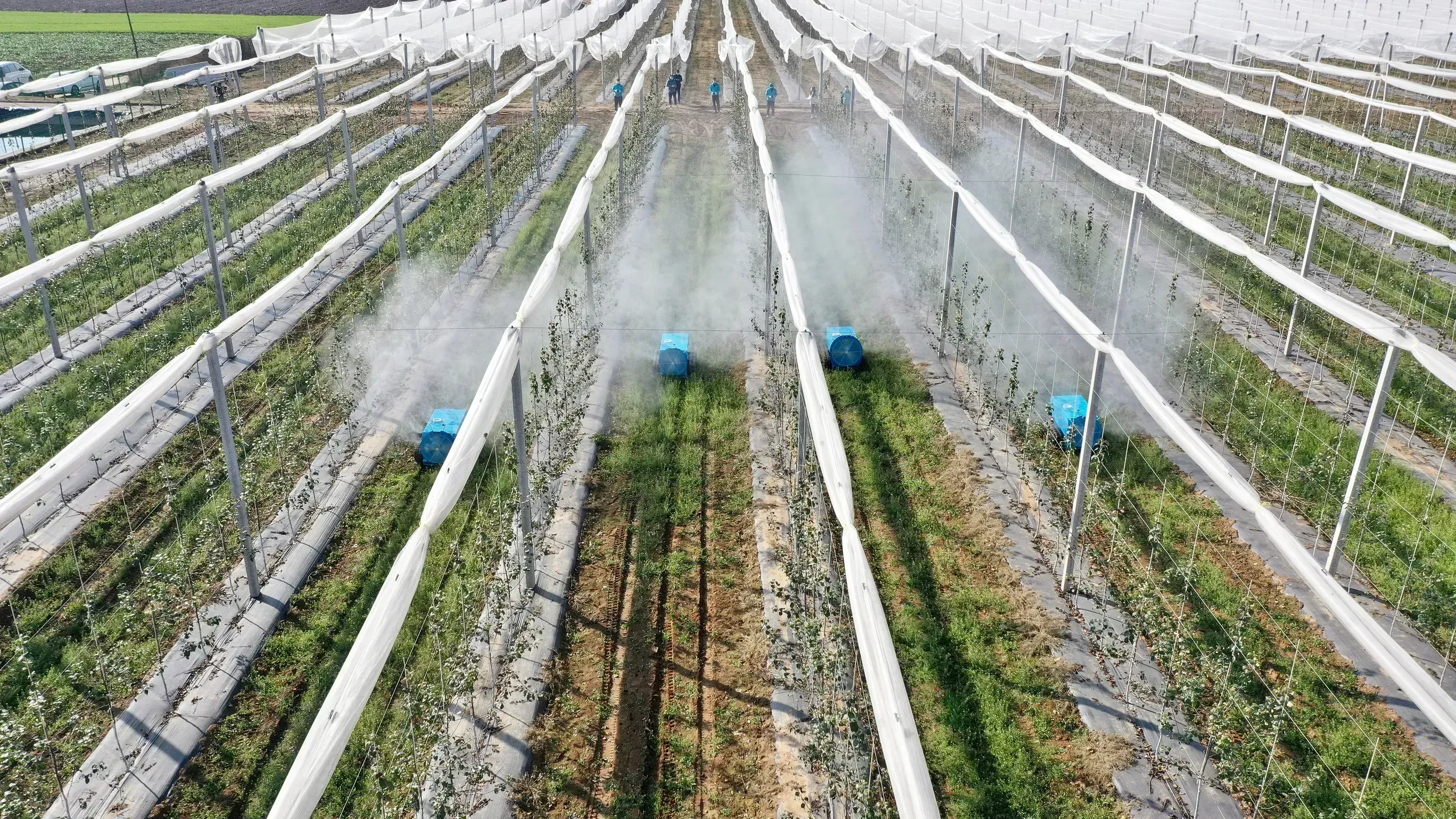 除了融合生态养殖与黄帝文化的农家乐外,张成还依托自己多年来积累的直播经验,建起了自己的苹果基地。其打造的300余亩的高标准“五新”果园,品种以秦脆为主,采用矮化密植栽种模式,配备先进格架防雹系统、智能水肥一体化系统、果园专用机械等等,科技赋能让传统农业焕发新生。“我就是吃家乡苹果长大的,也是靠苹果养大的,现在借助好政策和自己的好点子,让乡党们的钱包更鼓。”张成说。
