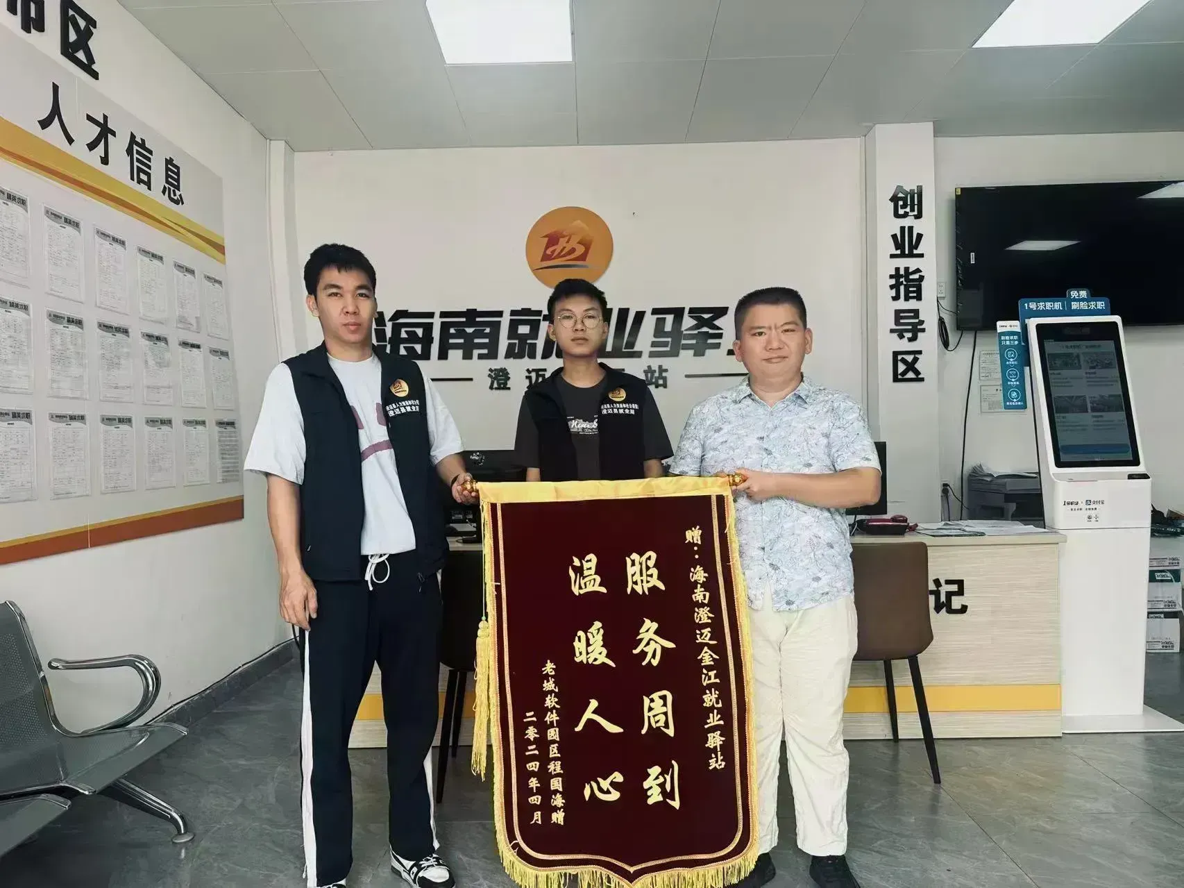 “非常感谢金江就业驿站,帮助我解决就业问题,感谢你们的耐心解答、真诚的提供帮助!”近日,与用人单位签订完劳动合同的程先生特地向海南就业驿站澄迈金江站送来锦旗作为感谢。