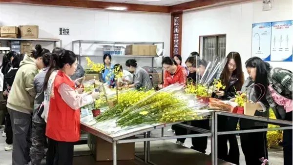 游客参与插花体验(孟文健 图)