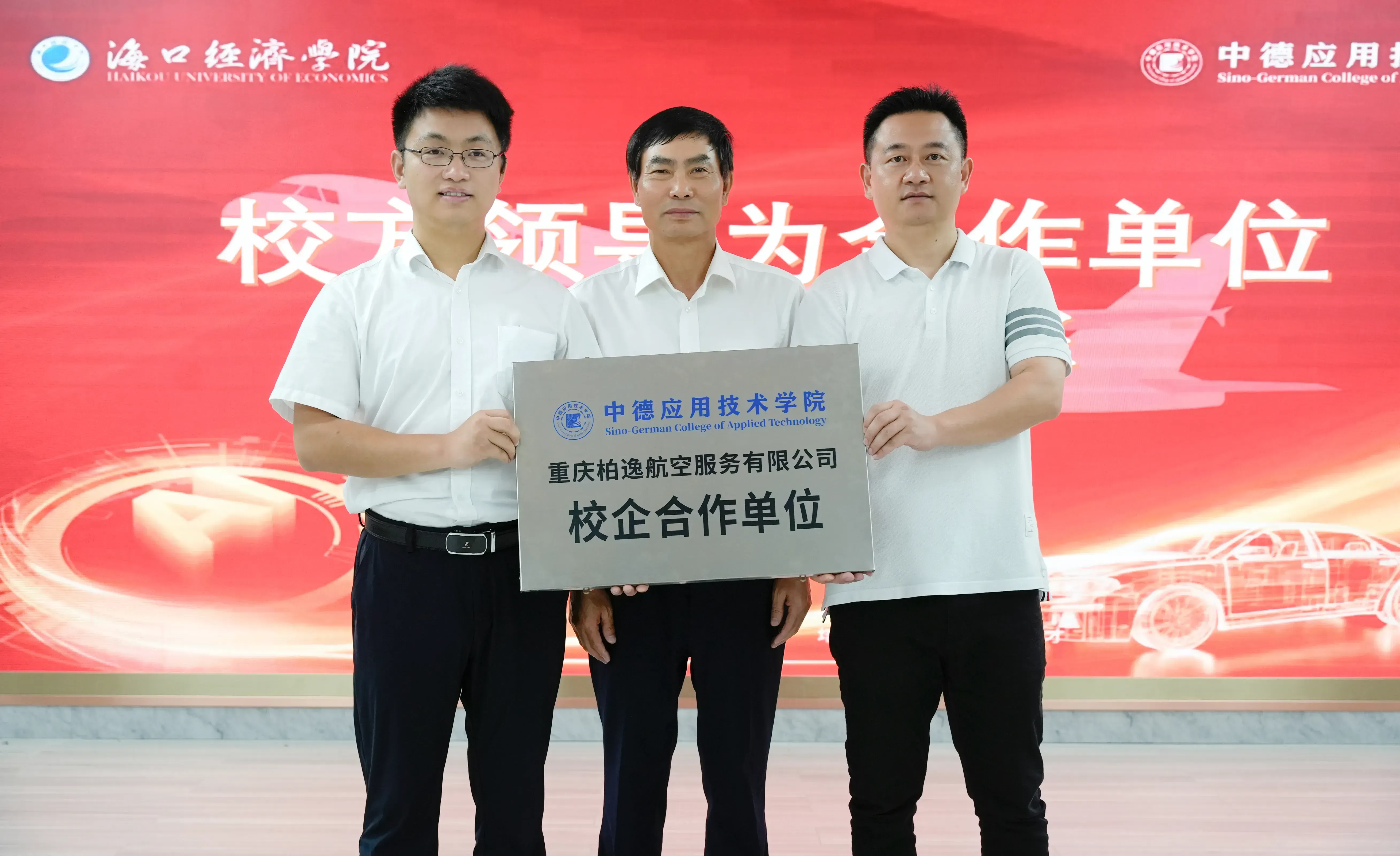 5月17日,海口经济学院中德应用技术学院首届学术文化节开幕式暨交通运输专业合作签约仪式在学校北苑电影大楼举行。开幕式上,中德应用技术学院与重庆柏逸航空服务有限公司举行校企合作共建签约仪式,并推出本科交通运输(飞机维修与管理方向)和专科飞机机电设备维修两个新专业。