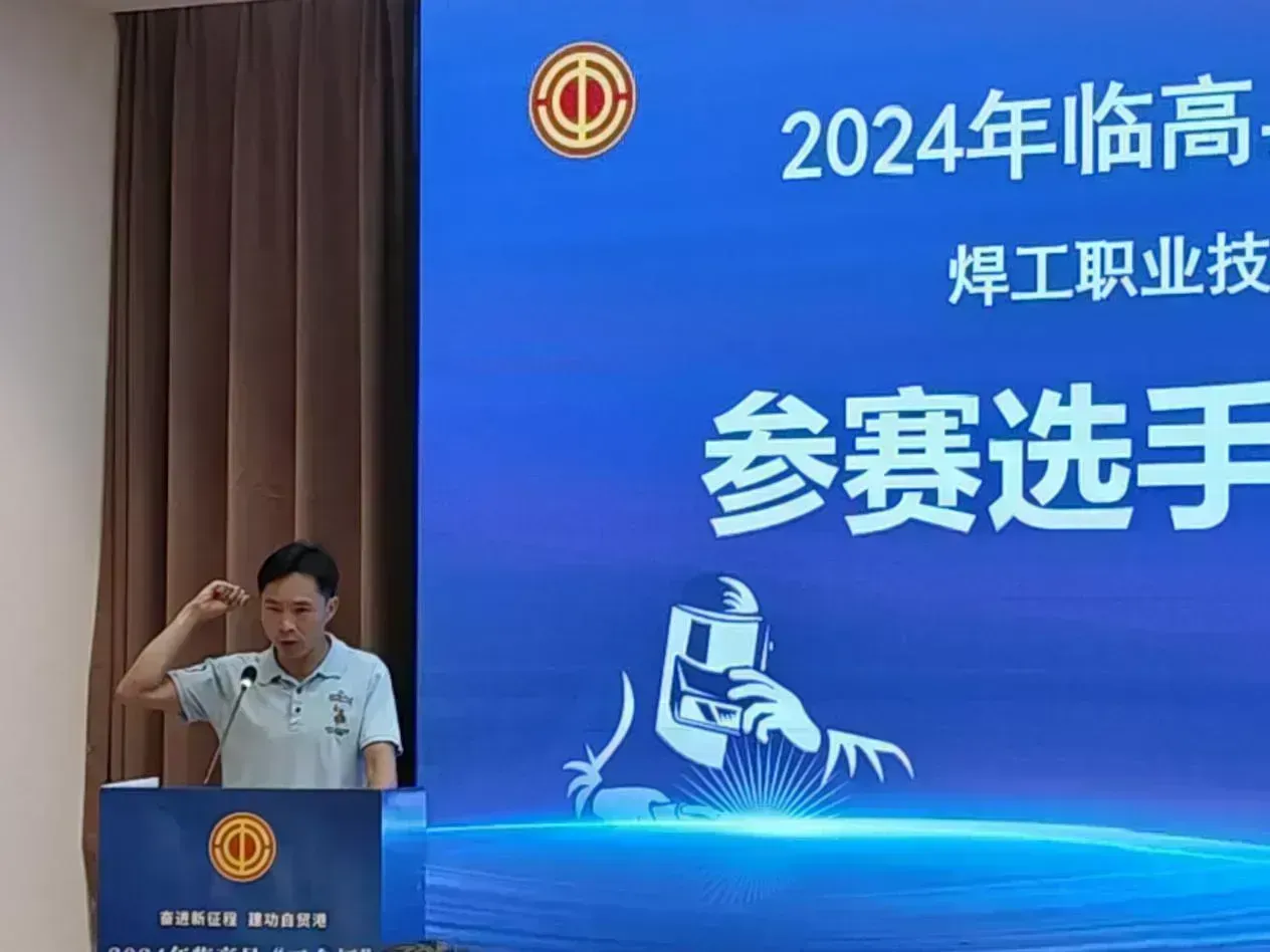 王晓成在致辞中表示,组织开展此次职业技能竞赛,旨在大力弘扬劳模精神、劳动精神、工匠精神,激发广大职工的爱岗敬业精神和创新发展热情,为临高“三区一园”建设作贡献,为海南自贸港建设提供有力的技能人才支撑。王晓成指出,焊接技术作为国家工业化发展的重要支柱之一,对焊工的职业技能有着极高的要求。这场竞赛不仅仅是一场竞技的角逐,更是一次技艺的交流和提升。每一位参赛选手都是焊接工艺传承和发展的希望所在。希望每一位选手都能发扬工匠精神,追求卓越、精益求精,展现自己的最佳水平。