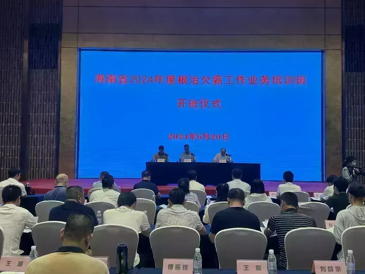 为进一步做好根治欠薪工作,加大根治欠薪工作力度,提升根治拖欠农民工工资工作协同治理能力,切实维护农民工劳动报酬权益。6月20日,2024年度海南全省根治欠薪工作业务培训班在临高县碧桂园金沙滩温泉酒店凤凰国际会议厅开班,海南省人力资源和社会保障厅劳动保障监察局局长吴定文主持开班仪式并作动员讲话,临高县副县长陈方作临高县根治欠薪工作经验交流发言,全省19个市县人社局、劳监大队的130名干部代表参训。