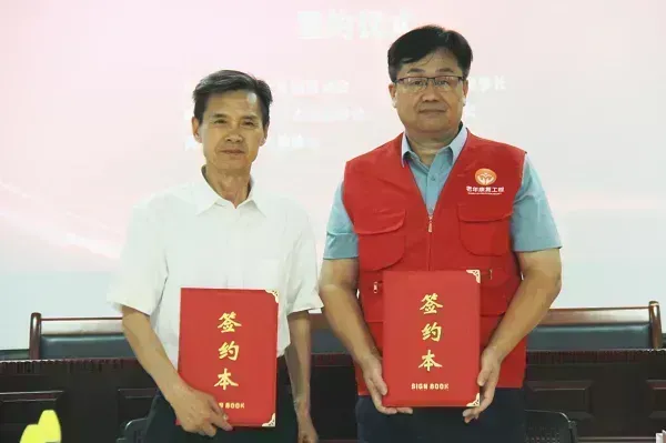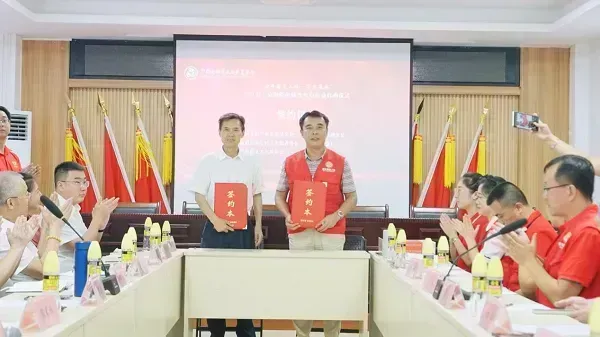 中国老龄事业发展基金会理事长于建伟与海南省爱心社工志愿者协会党支部书记、会长张毅签约