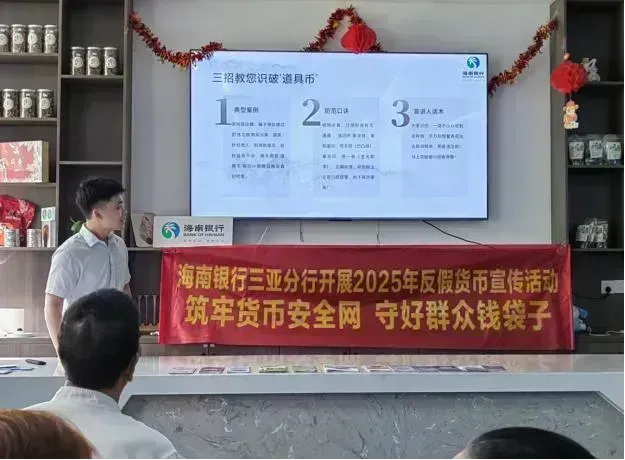 2025年9月,海南银行以“筑牢货币安全网,守好群众钱袋子”为主题,在全辖范围内组织开展反假货币宣传月活动,通过多形式、多渠道的宣传教育,切实提升公众识假反假能力,营造安全有序的货币流通环境。