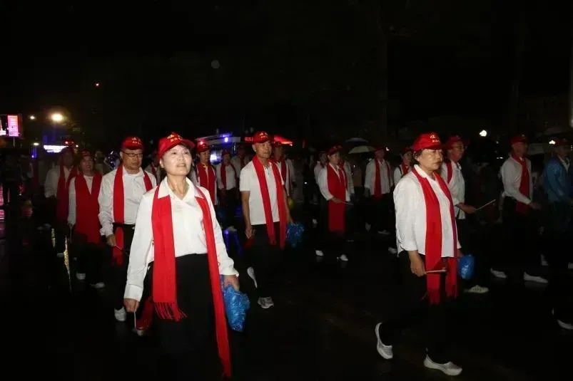 当晚,灯火璀璨,由47名候鸟人才组成的先锋方阵,身着统一服装,身姿挺拔、整齐列队,尽显昂扬风采。方阵成员手持鲜艳的五星红旗,目光坚定、神情激昂,齐声高呼“临高临高 来了就高”“赶海听涛 就来临高”的嘹亮口号,声浪铿锵有力、响彻夜空,传递出对临高这片热土的深情眷恋与无限热忱。伴随着激昂悠扬的红歌旋律,他们步伐铿锵、自信昂扬,迈着坚定的步伐从容走过巡游路线,每一步都饱含着扎根临高、服务临高的赤诚,每一声呐喊都彰显着候鸟人才助力临高发展的责任与担当,成为当晚巡游路上最具感染力的一道风景线。