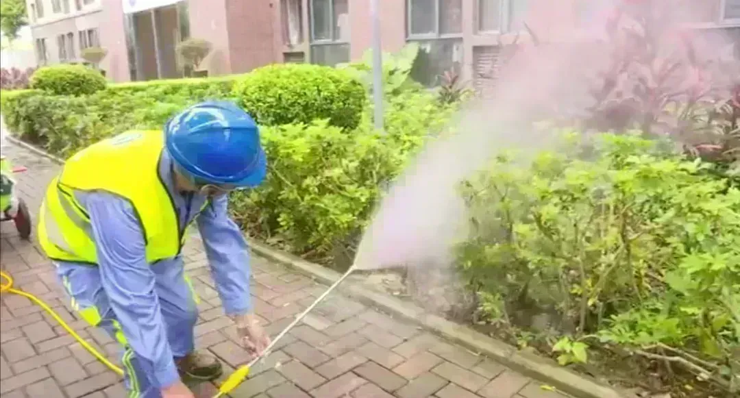 在消杀现场,身着专业防护服的工作人员背负喷雾设备,对石化区周边主次干道、员工生活宿舍区、行政办公集群、公共休闲绿地等重点区域进行细致清理,确保消杀无盲区。针对露天停车场排水沟、垃圾中转站压缩设备、地下管网检查井等蚊虫孳生高风险隐蔽点位,作业人员严格遵循操作规范,对可能存在蚊虫的区域逐一喷洒药剂,从源头消除蚊虫滋生条件。