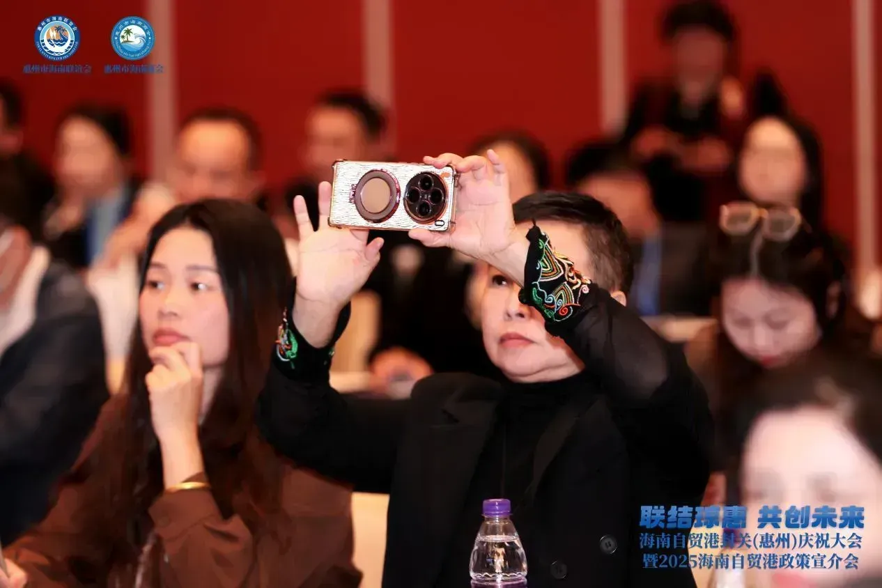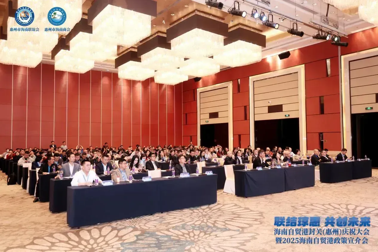 这里,正在举行海南自贸港封关(惠州)庆祝大会暨海南自贸港政策宣介会,200多位来自惠州市工商联、惠州国际商会、惠州市企业联合会(企业家协会)、惠州市汽车流通行业协会、惠州市潮汕商会(潮人文化经济促进会)等商协会机构企业家代表正通过一场深度对接会,让海南自贸港与粤港澳大湾区的发展脉搏同频共振。