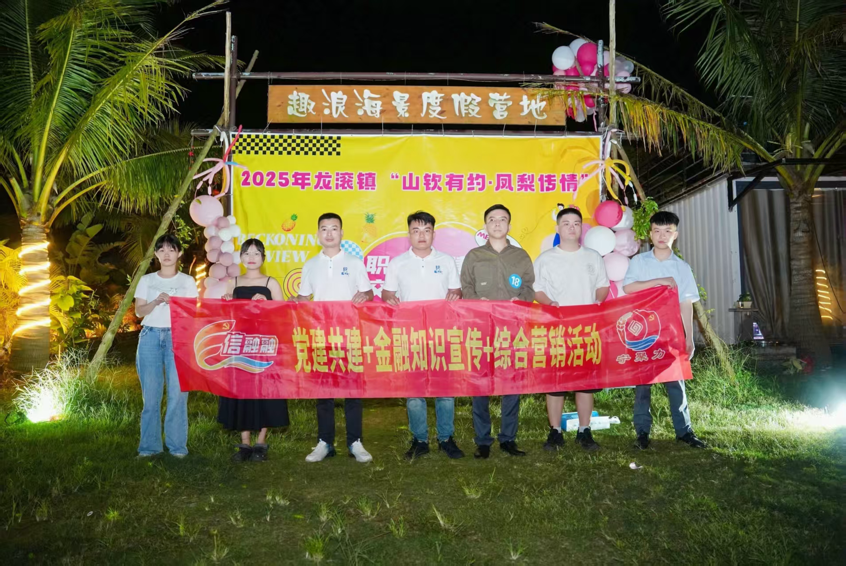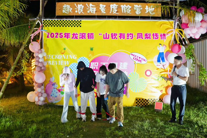 10月13日晚,由龙滚镇团委精心策划的“山钦有约·凤梨传情”职工团建交友活动在趣浪帐篷营地举行。活动吸引了来自龙滚镇政府、龙滚华侨学校、万宁农商行龙滚支行、万宁供电局、市委党史办、龙滚镇财政所、龙滚镇中心幼儿园、龙滚反走私执法站等多家单位的优秀青年踊跃参与,以及领导嘉宾、镇职工等90人共同度过了一个充满欢声笑语的浪漫夜晚。