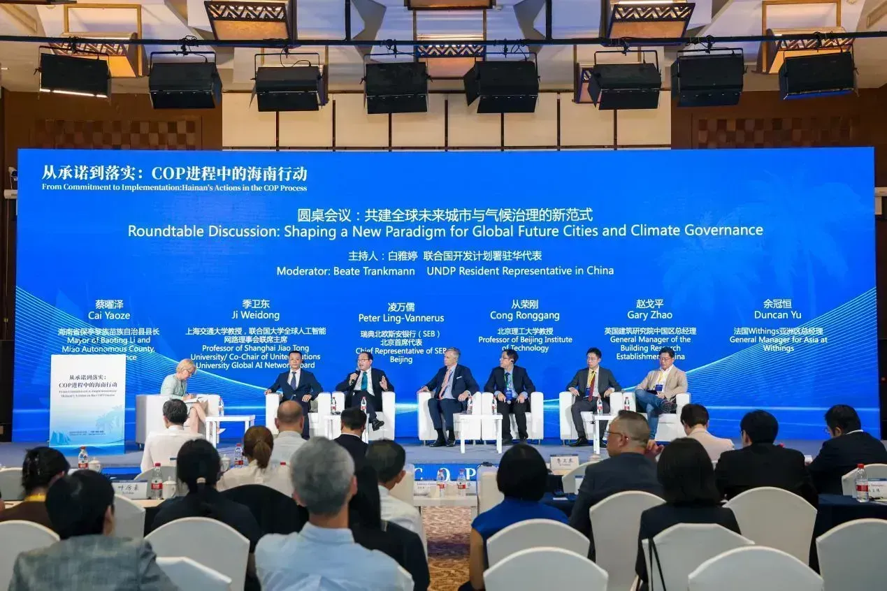 联合国开发计划署驻华代表白雅婷主持圆桌对话,保亭县委副书记、县人民政府县长蔡曜泽,上海交通大学教授季卫东、瑞典北欧斯安银行北京首席代表Peter Ling-Vannerus、北京理工大学教授从荣刚、英国建筑研究院中国区总经理赵戈平、法国Withings亚洲区总经理余冠恒等嘉宾,围绕“指标、融资、技术、共治、场景”五把密钥,现场拆解出“3个核心指标+2个融资案例+1套可信数据协议+1张游客碳中和账单”,为全球未来城市与气候治理提供“保亭实验室”样本。
