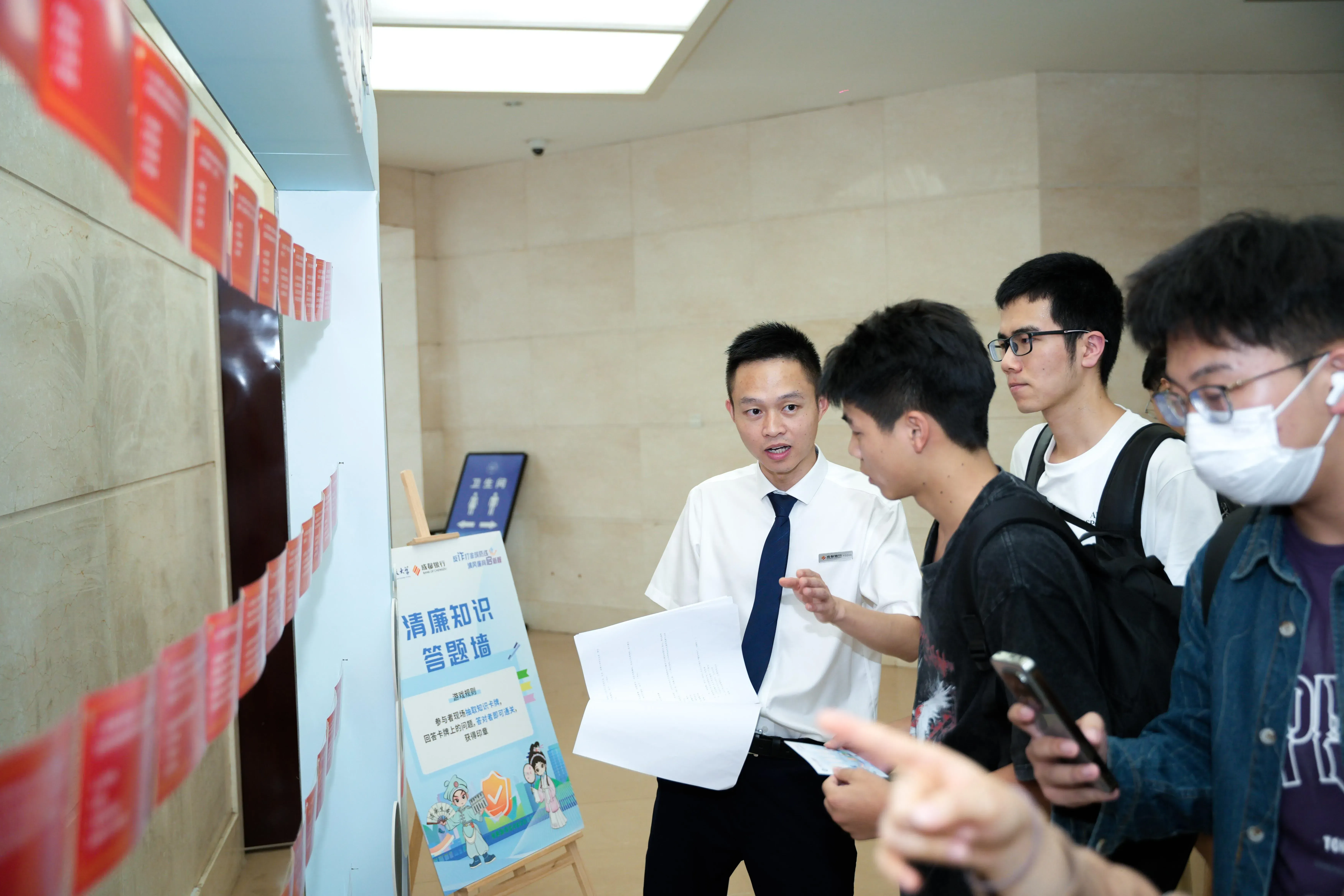 现场成都银行精心设置3组主题图文展架,系统展示中国特色金融文化“五要五不”原则、成都银行“活水金融 清廉成行”清廉金融体系及“成清廉华 持守方圆”清廉金融文化基地介绍,吸引众多学生驻足观看。