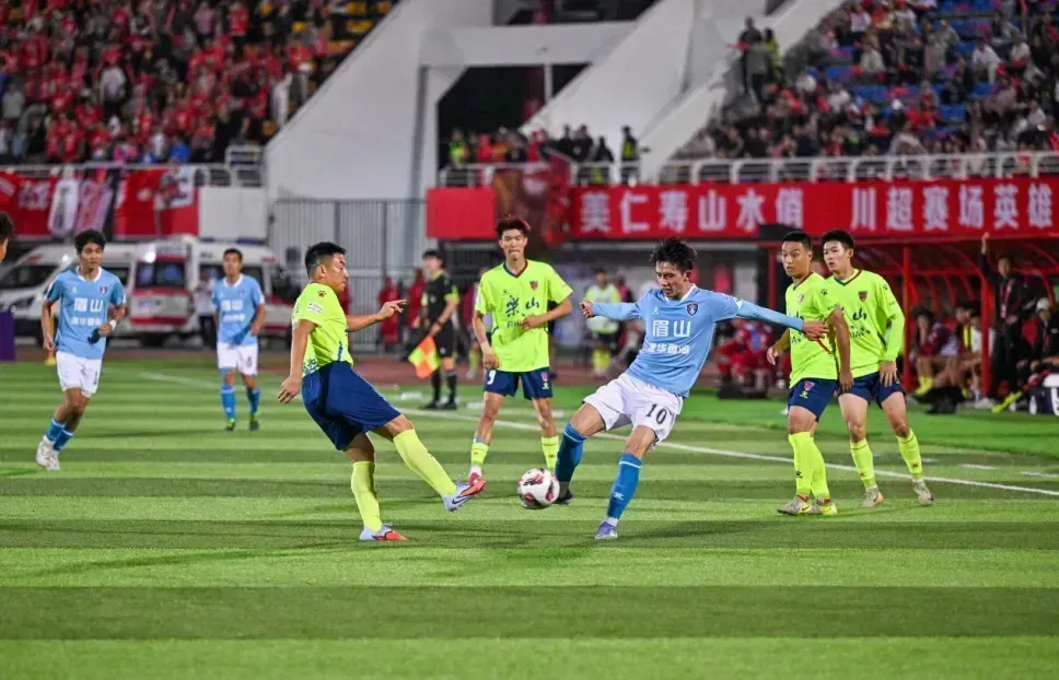6日晚,川西赛区眉山射天狼队与乐山味道非常队在仁寿相逢,一脉山水牵两地,千年文脉共传承的眉山与乐山两座兄弟城市在仁寿万人体育场展开“对决”。比赛开始前,“明月几时有,把酒问青天”的东坡诗词响起,万人共同吟诵,送出“千里共婵娟”的祝福,这场比赛已不仅是单纯的竞技对抗,而更像一场“家人局”,现场满是温情。当主裁判吹响比赛哨声,看台上“雄起”与“加油”的呐喊声此起彼伏,赛场又立刻变成了激情的海洋。