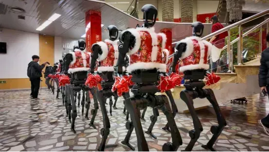 春晚节目中扭“赛博秧歌”的人形机器人。