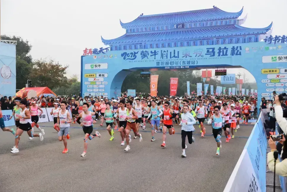 11月23日上午8时,2025蒙牛眉山东坡马拉松暨跑遍四川(东坡站)在东坡岛上激情启幕,1.7万名跑者齐聚岷江之畔,以脚步丈量东坡故里的灵秀山水,用奔跑对话千年传承的诗书文脉。