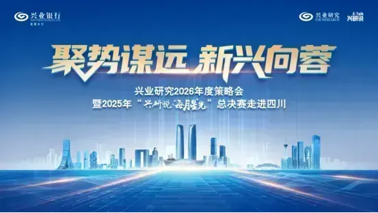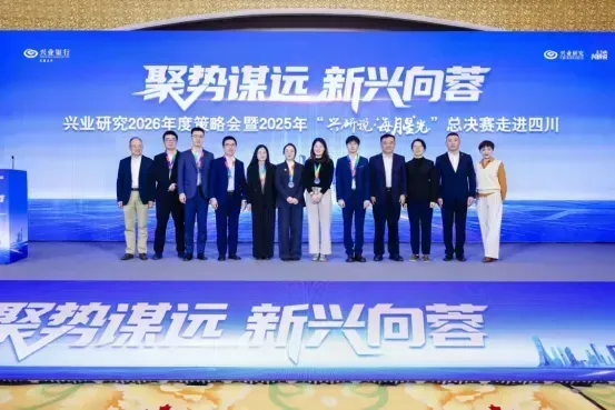 “十四五”收官在即,“十五五”谋篇蓄势。12月3日至4日,兴业银行成都分行联合兴业研究在蓉成功主办2026年度策略会暨2025年“兴研说·每月星光”总决赛。本次活动旨在深度践行“专家办行”,立足金融、服务大局、赋能实体,为金融强国和中国式现代化建设贡献更大力量。兴业银行成都分行党委书记胡斌,兴业研究党委书记、院长刘健,兴业银行首席经济学家、兴业研究学术评审委员会主席鲁政委出席会议。兴业银行成都分行、兴业研究主要负责人、500余名金融机构及企业客户代表参加会议。