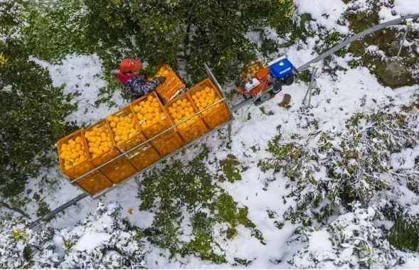 图为秭归果园里的“小火车”正运输柑橘