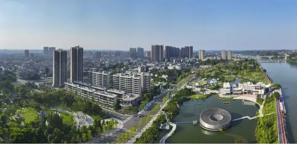 为了让水“活”起来,青神建设18公里“安澜”堤防工程,防洪标准全面提升。同时,为了提升居民幸福感,青神还实施“引岷入城、活水净化”工程,种植20余种水生植物,日均净化水量达2.5万立方米。如今的岷江(青神段)沿岸,20万亩竹海郁郁葱葱,6个“竹”主题公园错落有致,150公里竹林风景线如翠带环绕。