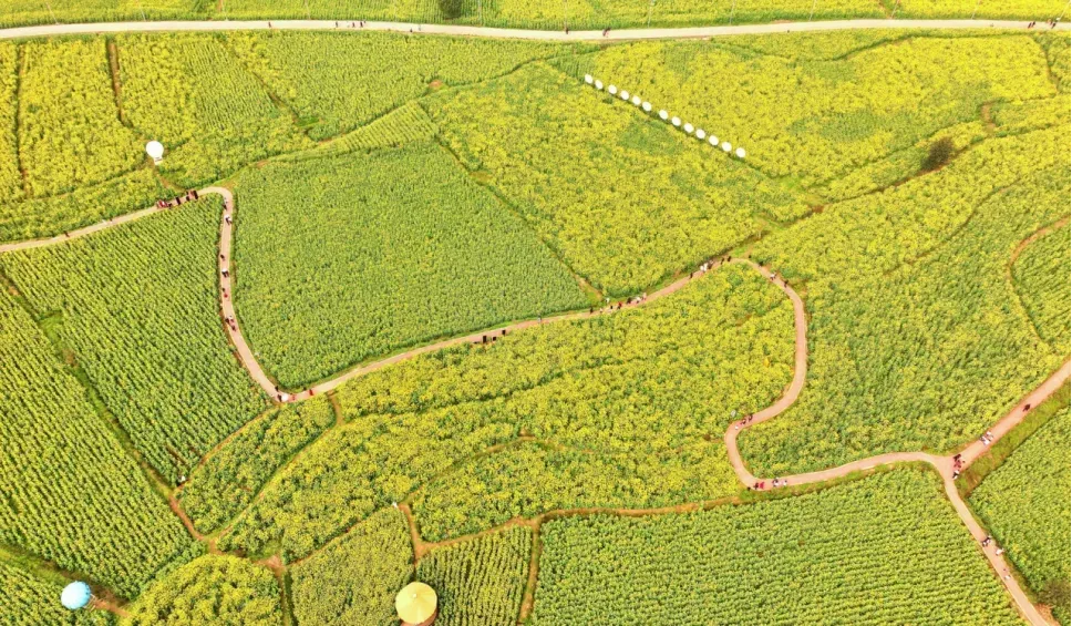 图为仁寿县青岗乡盘龙村的油菜花竞相开放,吸引游客前来踏青赏花。