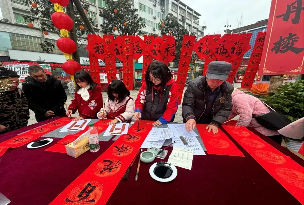 图为“墨乡丹棱·迎春送福”活动。 刘丁源/摄