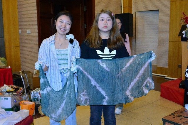 5月2日,在哈尔滨“公益小镇”天鹅湖庄园“走进非遗,竹之新语”公益活动正式开始,陕西省非物质文化遗产陕西白鹿原竹篾灯笼编织技艺的传承人、八十三岁的王学坤以视频方式展示了灯笼的文化历史与编织步骤;黑龙江省非物质文化遗产“麻花布”北蓝印染技艺的传承人孙晓梅现场展示蓝染技艺,介绍蓝染技艺的历史渊源、制作工艺和文化内涵。以西北、东北文化色彩的碰撞与融合来弘扬传统文化和民间艺术,成为了大学生们的独特创意。