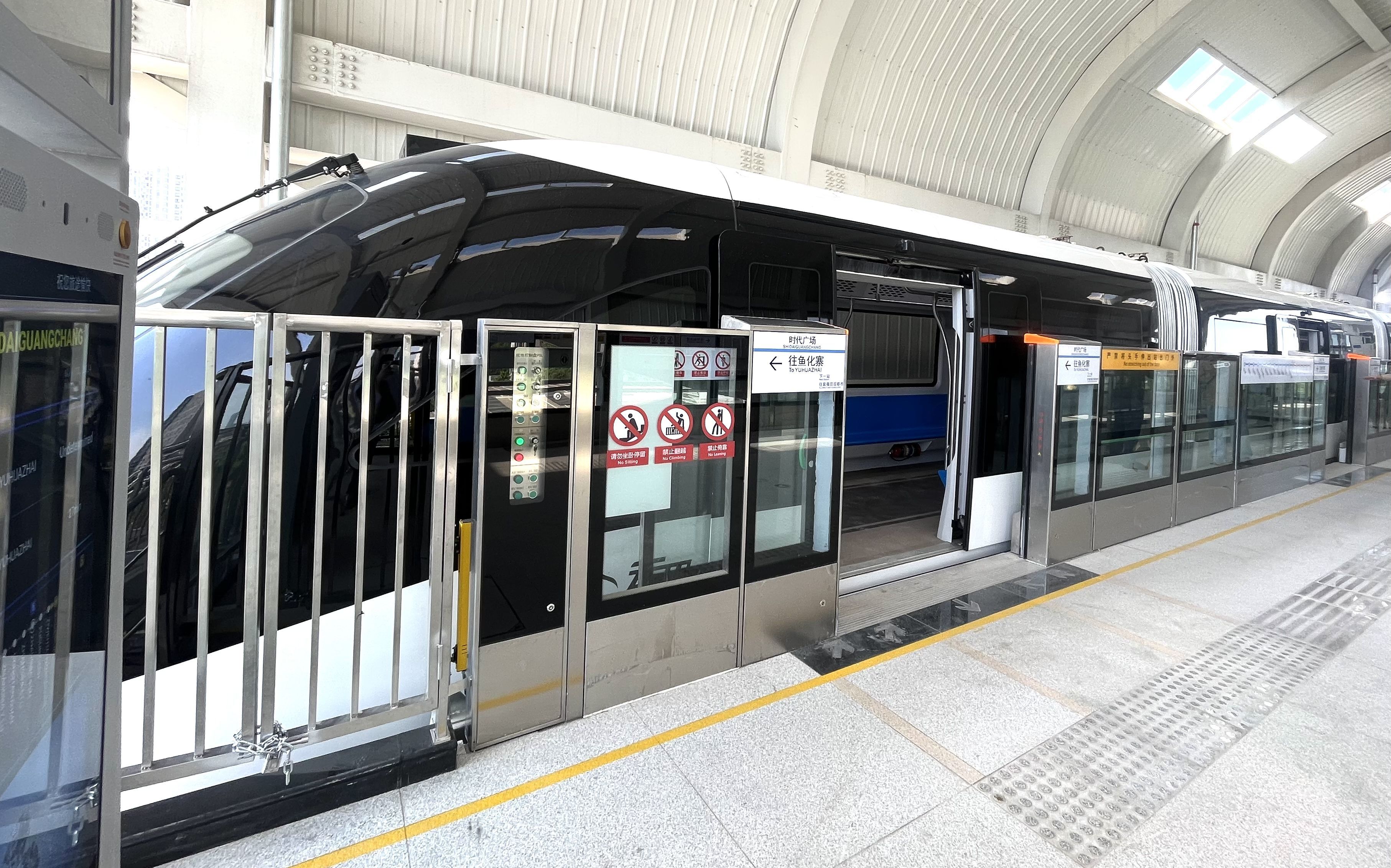“我们可以看到云巴没有司机和驾驶室,整个运行过程是无人化、自主化的,列车清晨自动出库、自动上线、自动运行,夜间自动回库、自动充电、自动休眠。”李慧说。