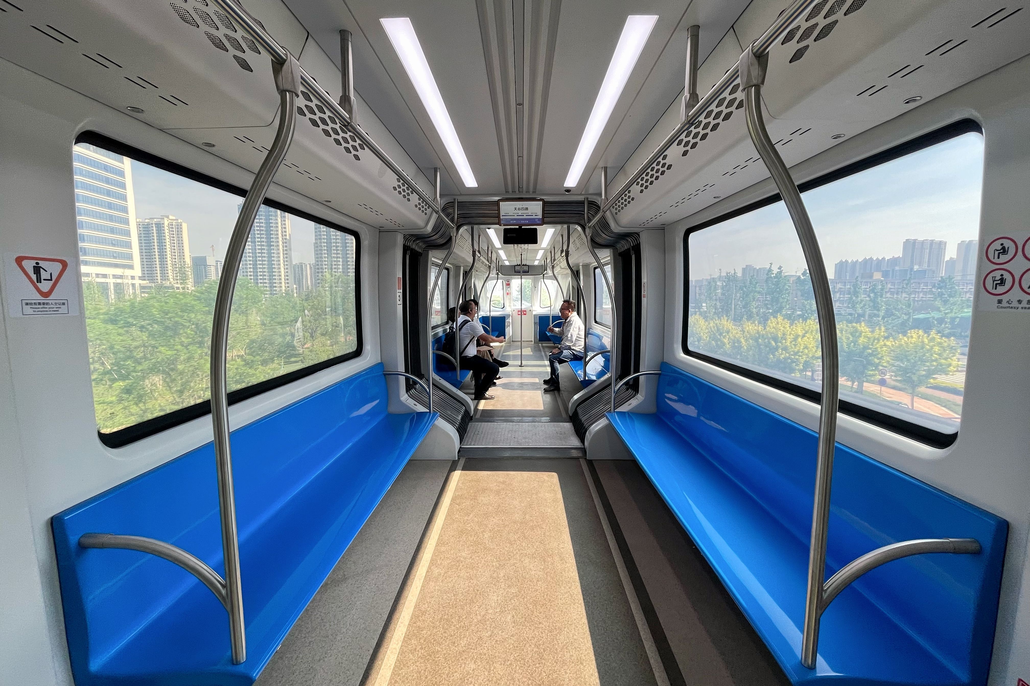 车身短小轻巧,行驶灵活。西安高新云巴初期车辆为3编组,可承载约210人。从西安高新区鱼化寨站出发,终点为恒业大道站,沿途串联陕西省图书馆高新馆区、华为西安研究所、丈八西社区、高新万达广场、郭杜公园、比亚迪等企业、居住区、公园、商场,开通后将缩短沿线居民上下班通勤时间,极大方便市民出行。