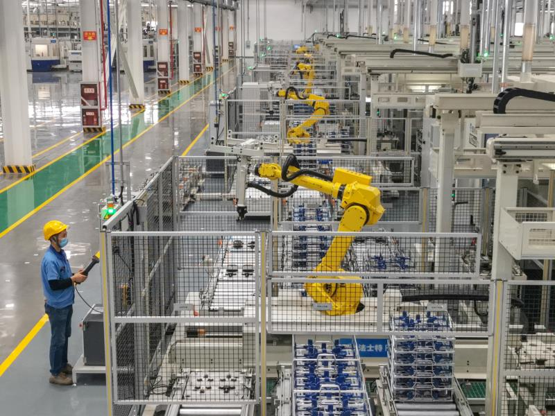 一台台黄色工业机器人灵活地转动机械臂,娴熟地完成各项作业。数十辆橘黄色物流小车来回穿梭,精准有序将各类生产物资送达到位,智慧大屏上各类信息图表与数字不断更新,生产经营动态一览无余……法士特是西安高新区企业设备更新和技术改造的先行者。