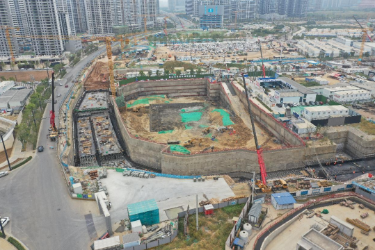 走进卓越领创中心项目,记者看到施工人员忙碌的身影穿梭,各种机械不停运转,处处热火朝天的建设场景。
