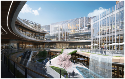 据了解,高科•未来广场项目位于西安高新区CID核心区域。作为大型城市综合体,项目总占地面积约157亩,总建筑面积约38.58万平方米,规划购物中心、商业街区、甲级写字楼群三大业态。其中,购物中心和商业街区面积约11万平方米,已与国内知名商业运营管理品牌——华润商业签约。