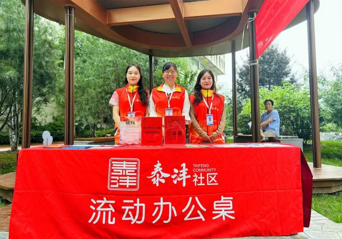 每周固定时间,“流动办公桌”在泰沣社区各小区轮流设点,为居民提供综合业务咨询,宣传党的政策方针、招募志愿者、普及安全生活常识等,同同时收集居民意见建议,问需于民,问计于民。切实做到发现问题在一线,化解矛盾在一线。