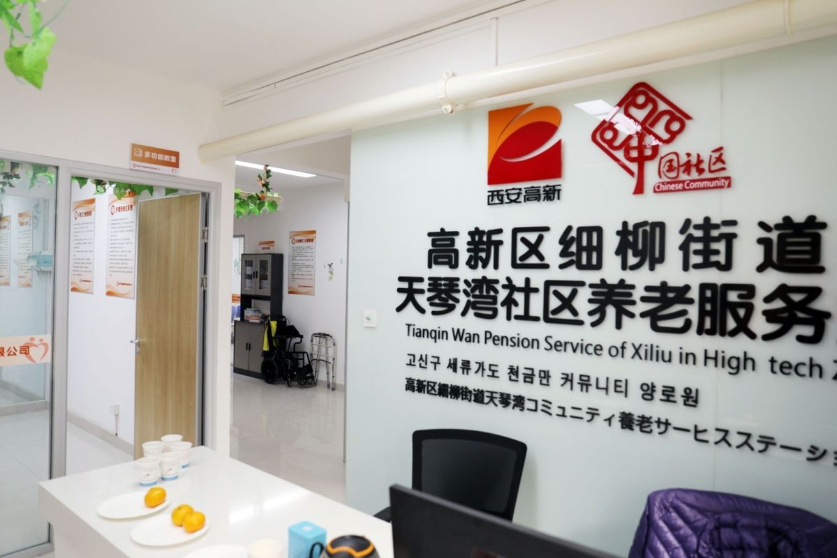 同样位于西安高新区的祝秦路社区养老服务中心,也是区域内社区养老以及“一老一小”服务的典范。140平米的空间,被合理划分成功能活动室、棋牌室、理疗室、图书室等多项个服务空间,并为老人提供助餐服务。