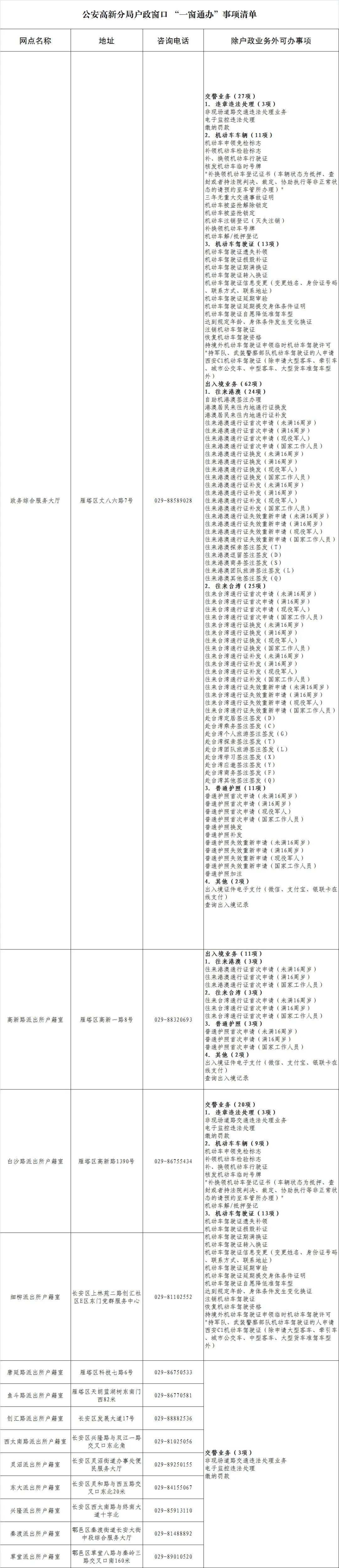 附:西安公安高新分局户政窗口 “一窗通办”事项清单