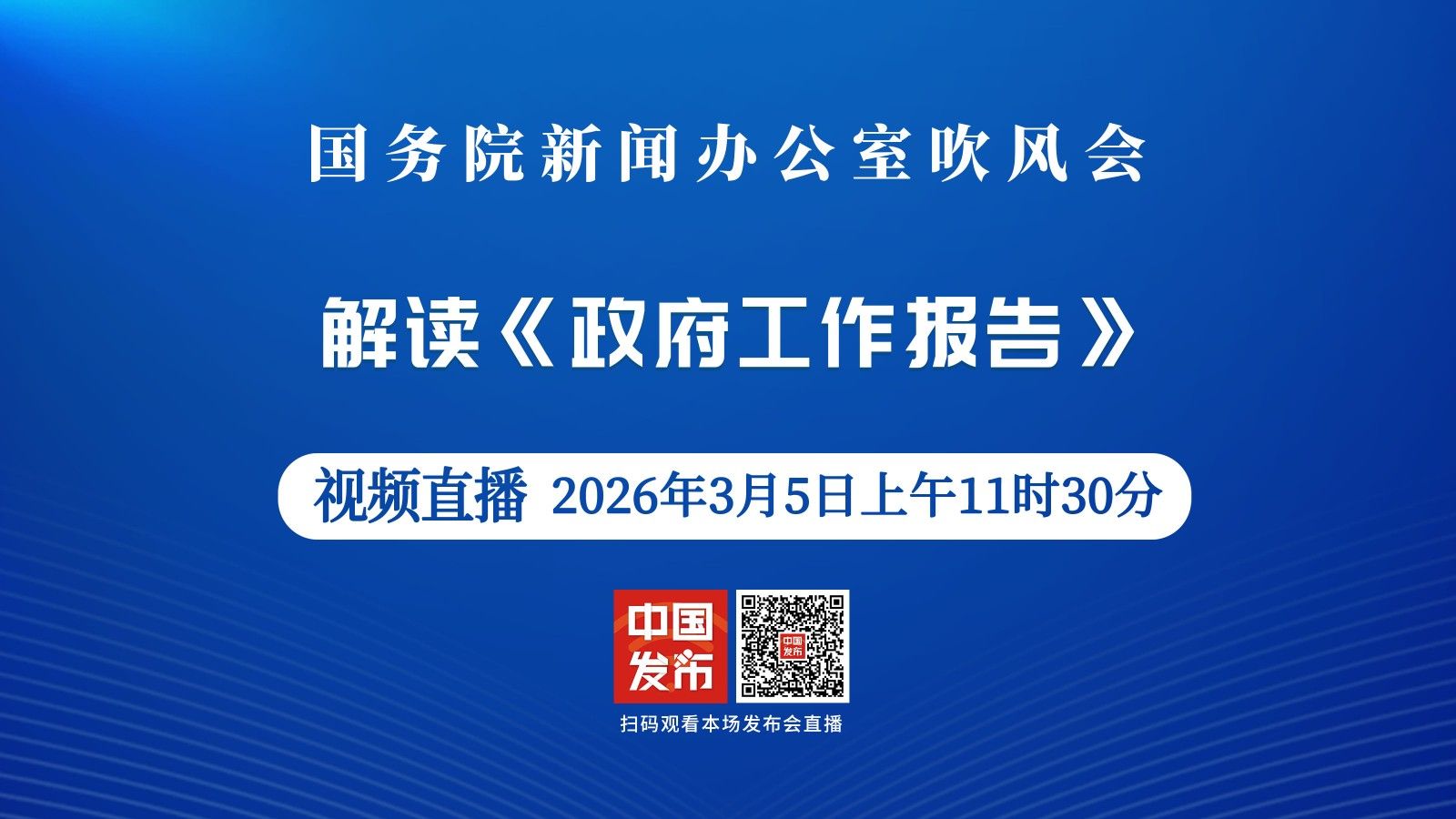 国务院新闻办公室将于2026年3月5日(星期四)上午11时30分举行吹风会,请《政府工作报告》起草组负责人、国务院研究室主任沈丹阳,《政府工作报告》起草组成员、国务院研究室副主任陈昌盛解读《政府工作报告》,并答记者问。